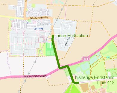 Laut einem Zeitungsbericht wird zurzeit über die Aufhebung der Sperrung des Madamenwegs am Raffturm für den Öffentlichen Personennahverkehr nachgedacht. Ziel der Umplanung ist die bessere Anbindung Lammes an das Busliniensystem. Die Linie 418, die zurzeit am Raffbad endet soll zu diesem Zweck verlängert werden und am Lammer Kreisel eine neue Endstation erhalten
